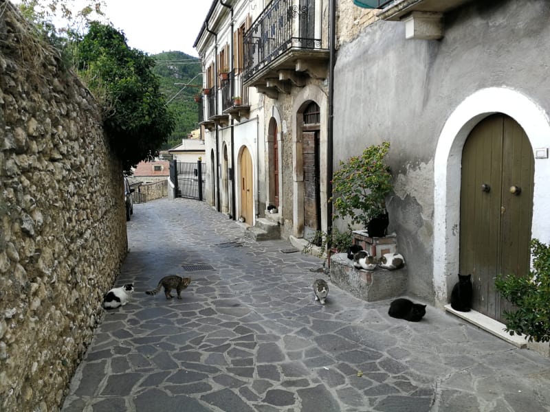 From Venice, the railway took us to a city called Pescara on the Adriatic coast. It is the most populated city of the Abruzzo region. We did not spend much time in Pescara, as we advice you not to do either, but got out of town for a little walk close to the village of Popoli. We discovered a beautiful castle ruin and enjoyed the sunny landscape. We also stumbled upon a local cat gathering.