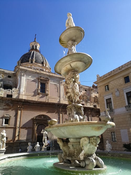 Before that, we still had a bit of time to explore the city. Palermo is full of pretty buildings, churches, fountains, theatres, and statues, as well as delicious street food. We walked around enjoying the good weather and pretty sights.