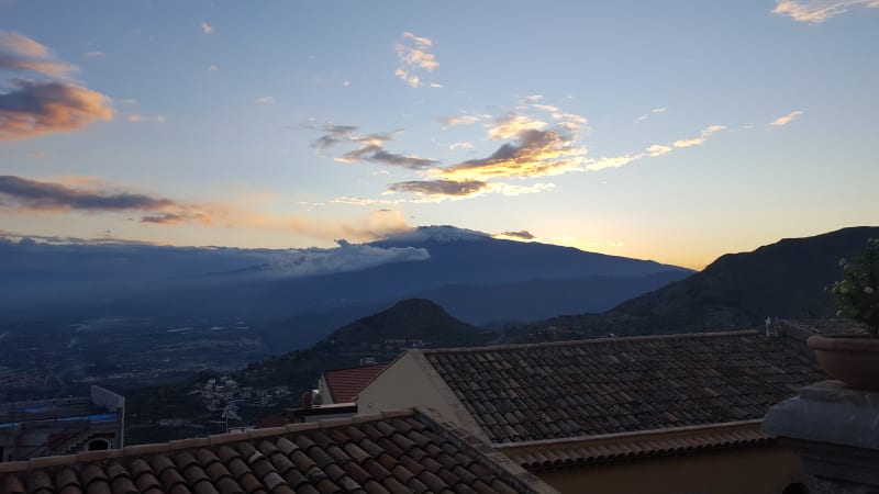 From the hills of Taormina, we could see the snowy peak of Mount Etna, one of the most active volcanoes in the world. We set out to explore this intriguing natural wonder. From Catania, we joined a guided tour that took us up to 2100 m (of a total of 3326 m) to walk through the versatile landscape: forest, black sand, islands of trees, rocks, and even a cave. Several points along the hike allowed us to see the main crater puff out ash and smoke.